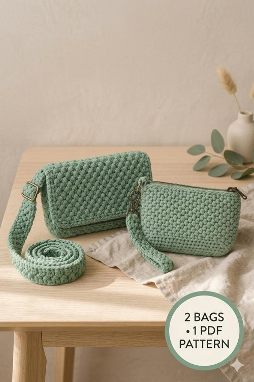 2 in 1 PDF Pattern Crochet Pouch Bundle, Crossbody Bag and Small Essentials Pouch, Modern Crochet Bag Pattern